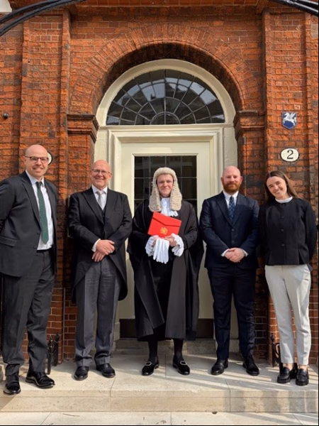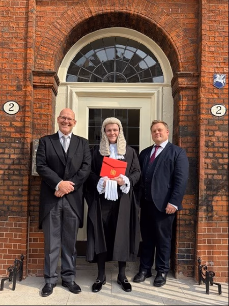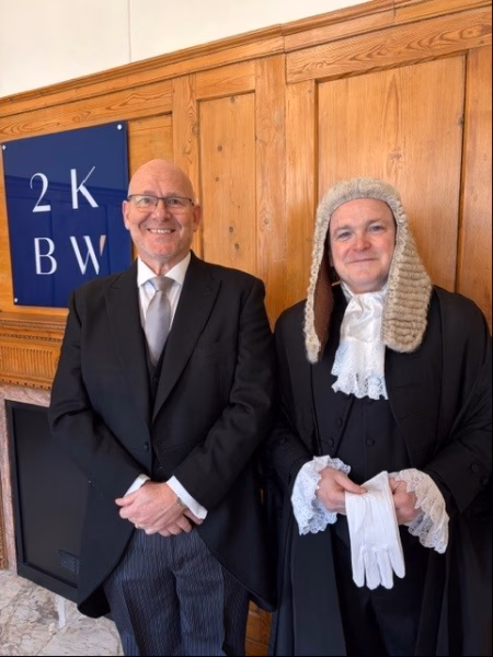 Barry took his place at the front of Westminster Hall at 11am on Monday 23rd March. Each King’s Counsel is accompanied by their clerk and five guests. The Silks are seated at the front of the Hall with the guests behind and the clerks at the back. At 11am, the Lord Chancellor, David Lammy, arrived in Westminster Hall, in procession, preceded by the Clerk of the Crown. Following some words of welcome the Lord Chancellor invited the King’s Counsel present to make the declaration starting with the first King’s Counsel honoris causa followed then by the King’s Counsel successful in the 2025 competition. Each is called in descending call order by the Clerk of the Crown to take their Oath. Upon having their name called they rise, walk to the microphone on the red carpet, bow to the Lord Chancellor and read aloud the declaration. When the Oath has been taken they receive their Letters Patent of Appointment (the red folder) from the Lord Chancellor and bow. They take a standing position on the south steps by a Doorkeeper. When the last King’s Counsel was called, collected their Letters Patent and taken up position on the south steps, the Lord Chancellor departed Westminster Hall.