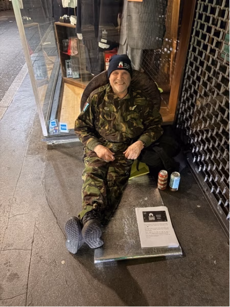 Our very own Barry Henderson showed his support for the Royal British Veterans Enterprise and did a sleep out in support of homeless ex-servicemen at the entrance to the Inn from Fleet Street, out- side Lipman & Son last night, 31st March.